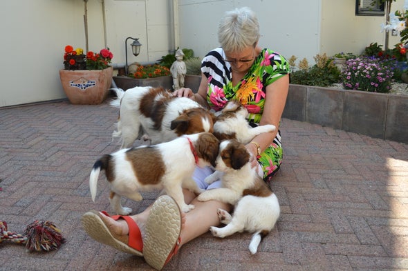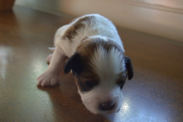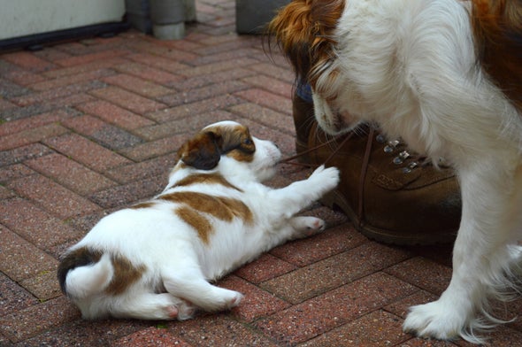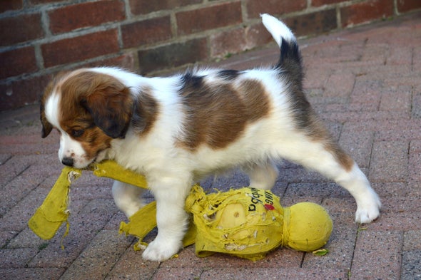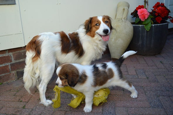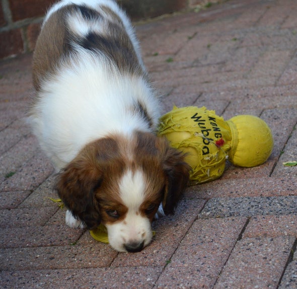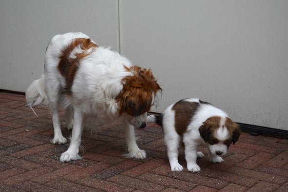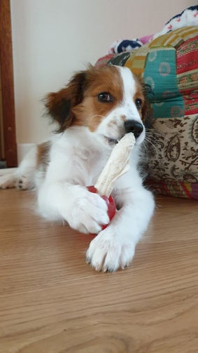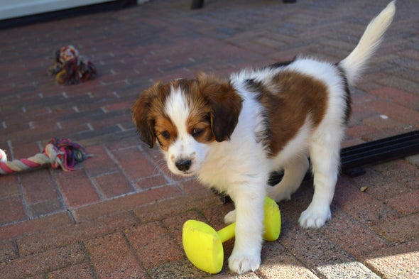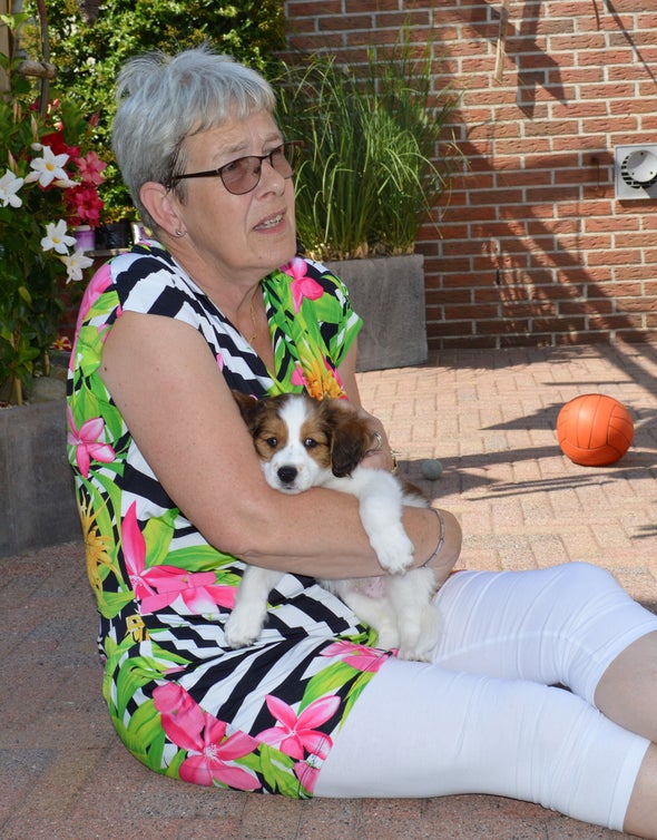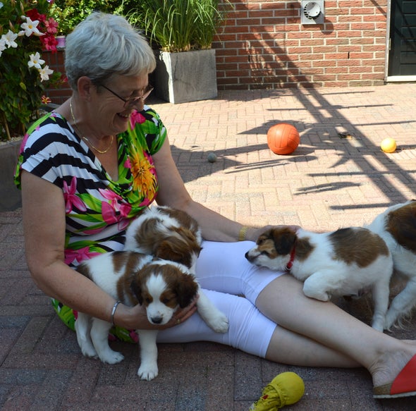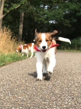 Het gaat super goed met Pepper. Hij groeit snel en leert ook erg snel. Hij is gek op spelen en wandelen. Eten gaat ook goed.
