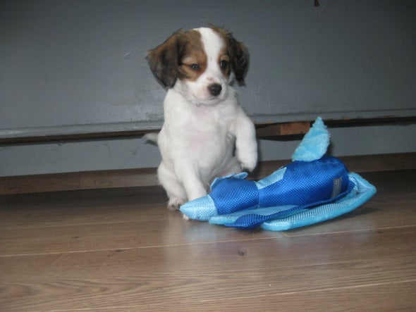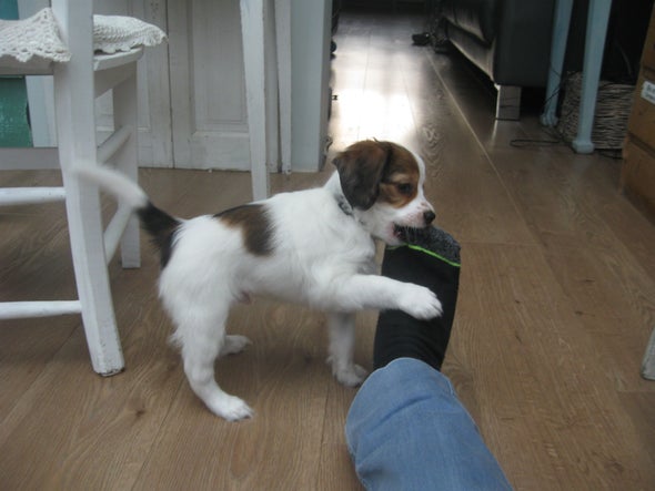 We doen ook al wat geheugenspelletjes met haar zoals een opgerolde handdoek met brokjes. Het is echt een heel intelligent hondje die het zeer snel in de gaten heeft.