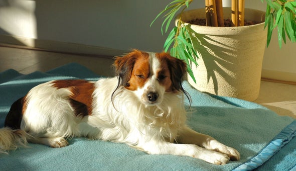 kussensloop liggen waarmee we aan het trekken zijn gegaan. Gek genoeg kijkt hij naar een gerookte kluif niet om. Kennelijk vindt hij de geur niet lekker want voor een doodgewone mergpijp haalt hij zijn neus niet op.