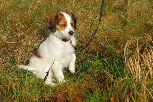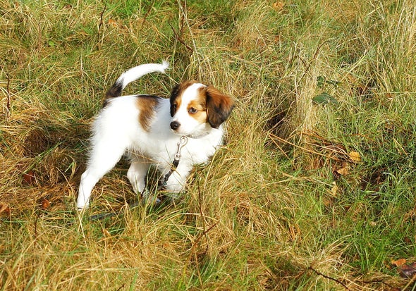 Buiten lopen vindt ze spannend. Andere mensen ontmoeten vindt ze heel erg leuk maar die grote vreemde honden vindt ze nog maar eng.