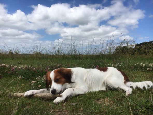 Het is echt een buitenhondje. We gaan om de dag met haar naar een recreatie[park hier in Veendam of naar het bos waar ze heerlijk kan rennen.