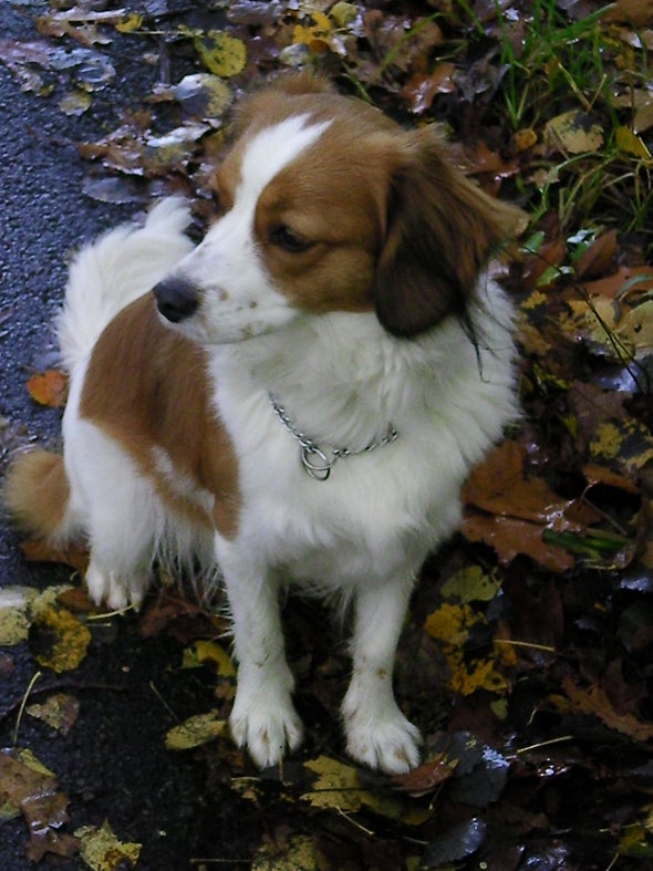 Wandelen vindt ze heel leuk en onderweg vindt ze alles wel heel spannend (mensen, auto’s, andere honden, fietsers, blaadjes enz.)